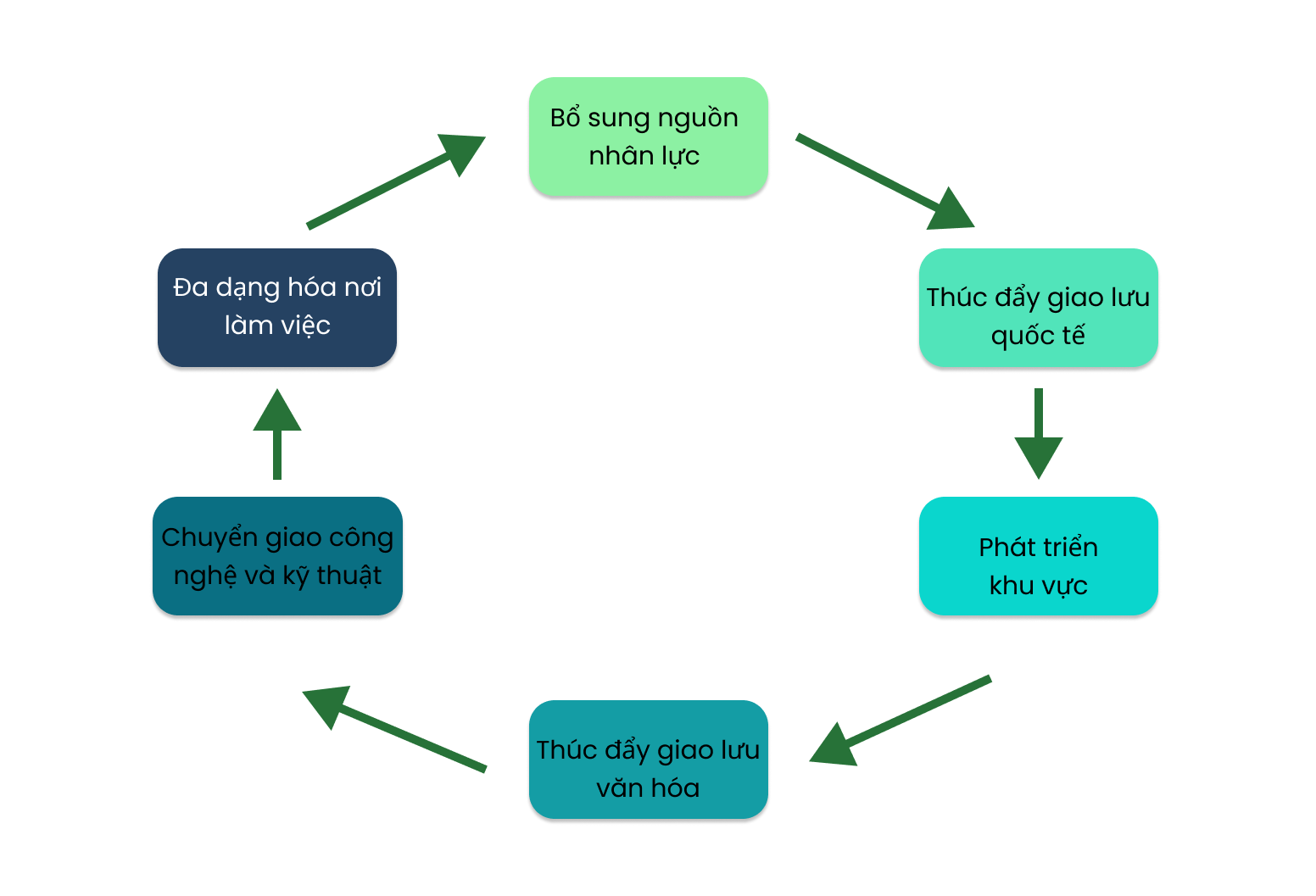 Giao lưu giữa người dân địa phương và thực tập sinh kỹ năng thúc đẩy sự hiểu biết đa văn hóa, làm cho cộng đồng trở nên cởi mở và phong phú hơn.